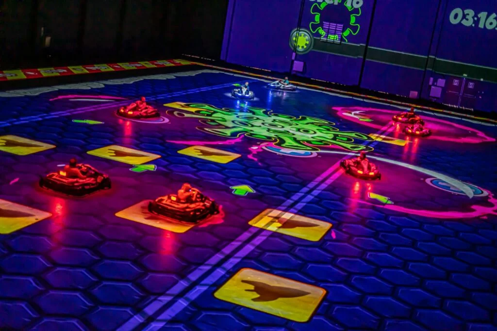 A bord de ton puissant kart électrique, roule plein gaz et interagis avec les décors et bonus virtuels projetés au sol, affronte tes adversaires et déploie tes talents de joueur et de pilote pour remporter la partie ! Que tu viennes jouer avec tes amis, ta famille ou tes collègues, tu trouveras à BattleKart Orléans tout ce qu’il te faut pour passer un moment inoubliable !